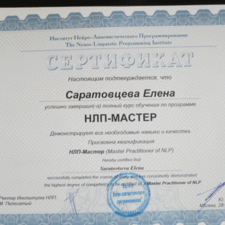 2) "НЛП-Мастер", 2013, Институт НЛП, сертифицированный курс под руководством Юрия Чекчурина и Михаила Пелехатого.